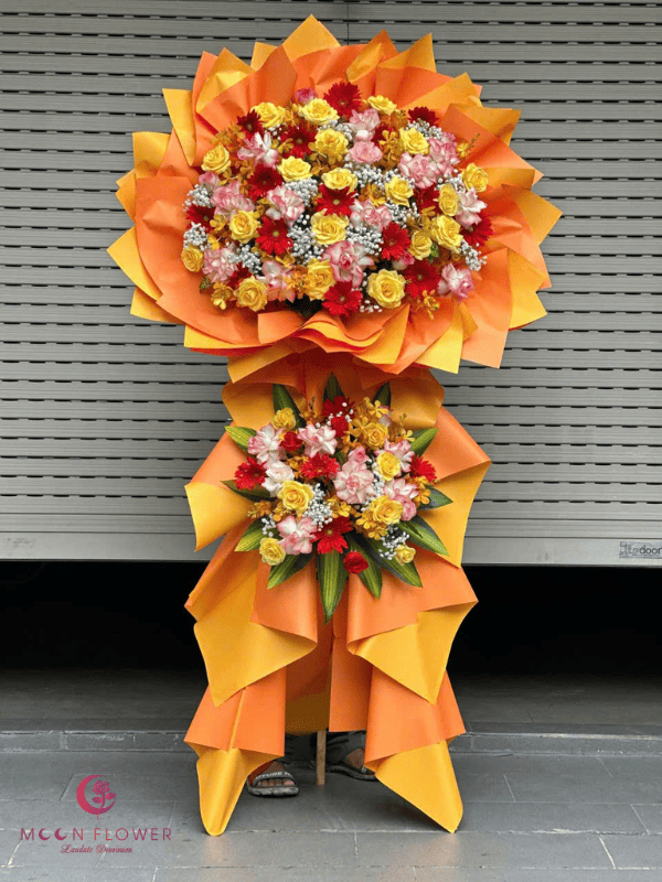 Hình ảnh của lẵng hoa khai trương – Đón Thời VậnHình ảnh Lẵng hoa khai trương – Đón Thời Vận tone màu vàng camHình ảnh khác của Lẵng hoa khai trương – Đón Thời Vận